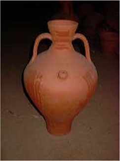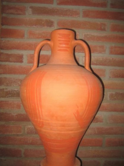 Tradicionalment sense cap tipus de decoració, avui amb les sis pinzellades al coll, al peu, a la panxa i les anses, amb argila