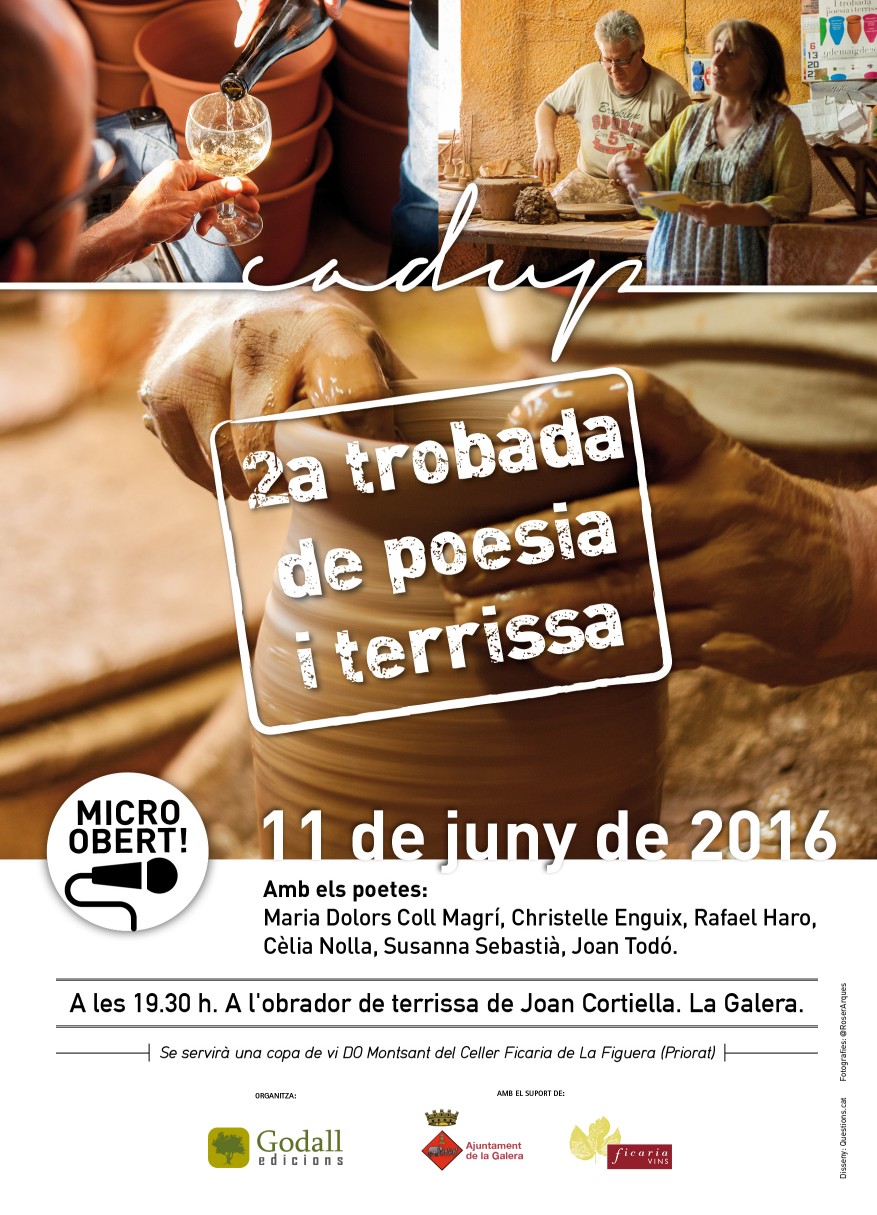 El proper 11 de juny, a les 19'30 h, a l'obrador de terrissa (C. La Creu n.70 de la Galera) de Joan Cortiella, únic terrisser en actiu a la Galera i a la comarca del Montsià, tindrà lloc la II Trobada de poesia i terrissa, organitzada per l'editorial: Godall edicions i el Mestre terrisser Joan Cortiella amb la cololaboració de l'Ajuntament de la Galera..